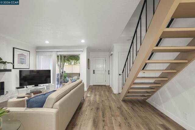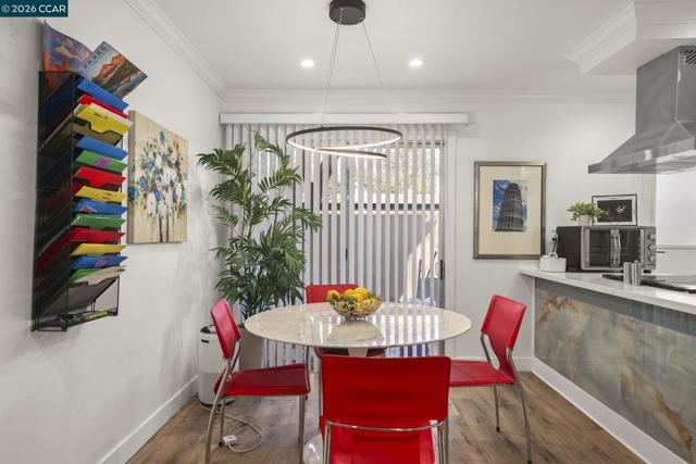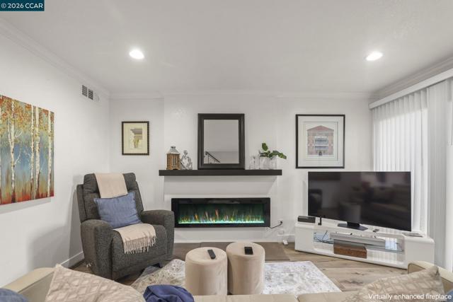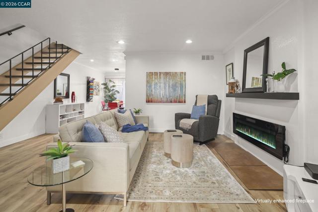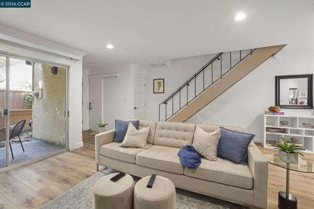 One-of-a-kind townhome located in the highly sought-after "Sunset Park" community, offering an exceptional opportunity as a primary residence or investment. Tucked at the back of the complex for added privacy, this beautifully updated end-unit home features two spacious bedrooms, two private patios, and an upstairs balcony off the primary bedroom, creating wonderful indoor-outdoor living spaces. Stylish laminate flooring runs throughout the home, complemented by crown molding, recessed lighting, and a custom programmable color-changing fireplace with a stone surround that adds warmth and ambiance year-round. The updated kitchen showcases quartz countertops and a pantry, while the full-size indoor laundry is conveniently tucked behind a charming barn door. Residents enjoy resort-style amenities including a pool, clubhouse, tennis courts, and scenic walking paths, all set within beautifully maintained grounds. Ideally located next to the Iron Horse Trail and just minutes from Heather Farms Park, Diablo Hills Golf Course, downtown Walnut Creek, shopping, dining, freeways, BART, and John Muir Hospital. This is a rare opportunity to own a truly turn-key home in an unbeatable location—don’t miss it.