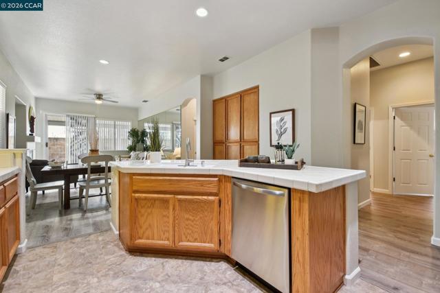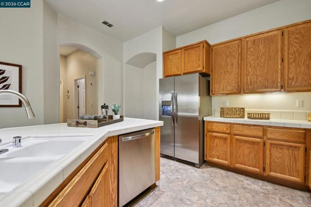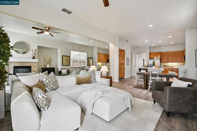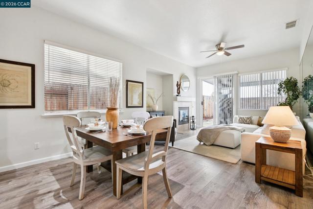 Turn-key single-story home in an established, enchanting neighborhood. Built in 2001 and located in a highly desirable and established community known for its top-rated schools, this home offers comfort, style, and peace of mind. Fresh interior paint, new luxury vinyl plank flooring, and brand-new stainless steel kitchen appliances create a crisp, move-in-ready feel throughout.A formal living room and dedicated dining area welcome you in, making entertaining both elegant and effortless. The layout then opens to a spacious kitchen and family room combination. A fabulous kitchen with center island, pantry, ample cabinetry, and brandnew stainless steel appliances including a built in microwave are all sure to please every home chef! The family offers a cozy gas fireplace, and sliding door access to the backyard—perfect for indoor-outdoor living. The generously sized primary suite is a true retreat with a spa-like bathroom, while secondary bedrooms are filled with natural light and offer flexible living options. A finished two-car garage and indoor laundry room complete this thoughtfully designed floorplan. A private, low-maintenance backyard with a covered patio extends the living space outdoors. Hurry—homes like this are rare.