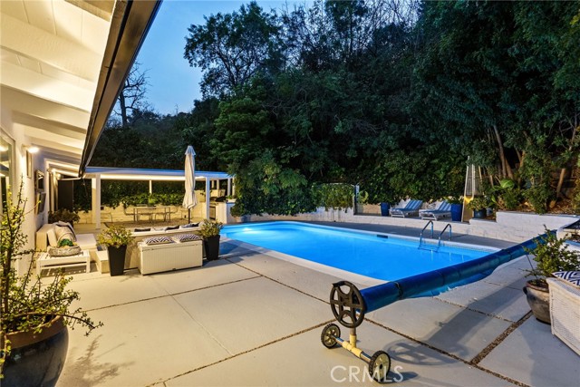 Discover this exquisite mid-century contemporary home with fantastic curb appeal, nestled on a secluded hillside in a coveted Sherman Oaks neighborhood. Ideally located South of Ventura Blvd., this property offers close proximity to top-rated schools, premier dining/shopping, and easy freeway access. This gem features 4 bedrooms and 4 bathrooms (3 en suite), offering 2,597 sq. ft. of thoughtfully designed living space on a 7,988-sf. lot that perfectly blends privacy, comfort, and style. Lush, mature landscaping surrounds the home, highlighted by an inviting heated swimming pool and a covered outdoor dining/BBQ area—ideal for enjoying the quintessential Southern California lifestyle year-round.