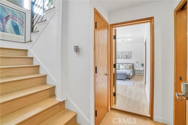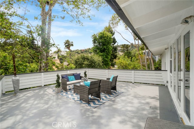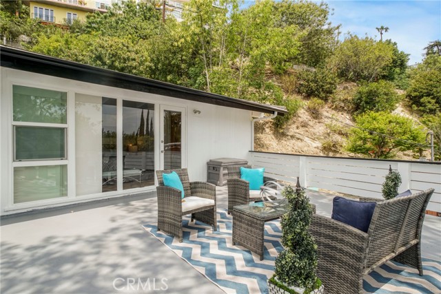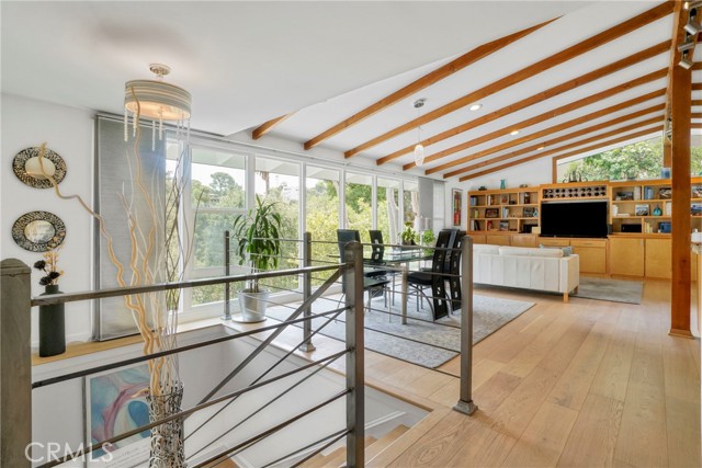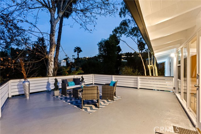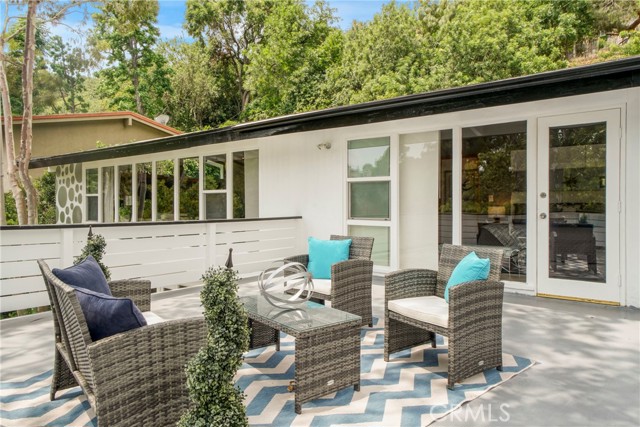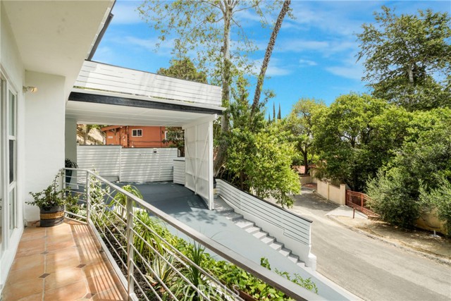 Upstairs, the spacious primary suite opens to a private deck with delightful peek-a-boo views of the mountains and the San Fernando Valley. Additional features include a two-car carport, triple-zone HVAC, a separate laundry room, a large mechanical room, and extensive storage throughout.