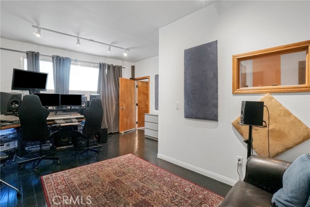 One of the home’s standout features is a custom-built recording studio, constructed with QuietRock drywall for superior soundproofing. The studio includes a booth suitable for vocals, live instruments, or drums (equipment not included) and can easily be converted into a movie theater, media room, fifth bedroom, or even a separate ADU by transforming the booth into a bathroom and adding a kitchenette.