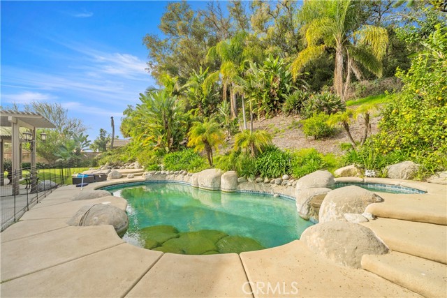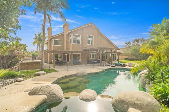 The beautifully landscaped backyard is ideal for entertaining, featuring a private swimming pool and spa, an outdoor BBQ area, and a spacious patio—perfect for family gatherings or social events.