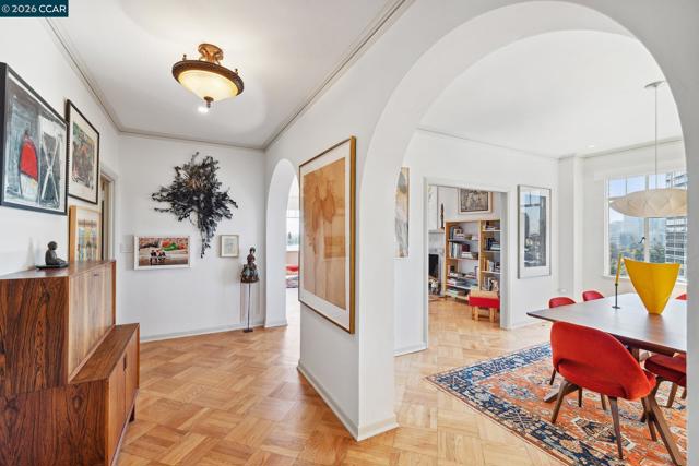 The second you enter the iconic Bellevue Staten building you transcend the time and step into a different world. Designed by a prominent Herman Carl Baumann, this architectural work of art has been the city’s Art Deco staple since 1929 and is listed in the National Register of Historical Places. The opulent lobby will strike you with original stone and metal finishes continuing the theme throughout common areas. Suite 1101 welcomes you with breathtaking panoramic views and sophisticated finishes. Freshly remodeled with a chic kitchen, high-end appliances, modern bath, custom lights and built-in closets, this turn-key unit will appeal to the most discerning buyer. Parquet flooring and original wood burning fireplace create a warm and inviting setting. With stunning views of Lake Merritt and city skyline from each window, this home is a rare find. The residents get to enjoy a 24-hour doorman / concierge service, valet parking, and meticulous building maintenance. Monthly HOA fee includes heat, water, daily garbage removal, community laundry, basic cable, and internet. Located in a historic part of Oakland with a 93 walk score, this property is a timeless epitome of urban luxury living.