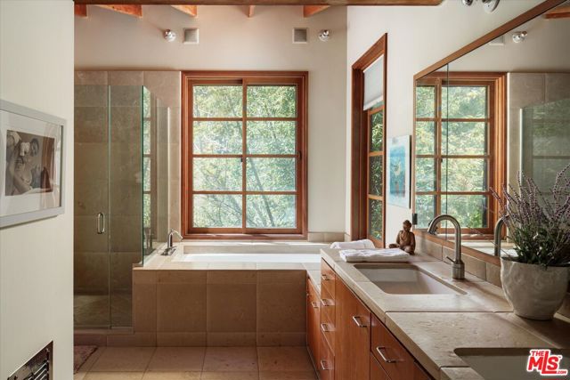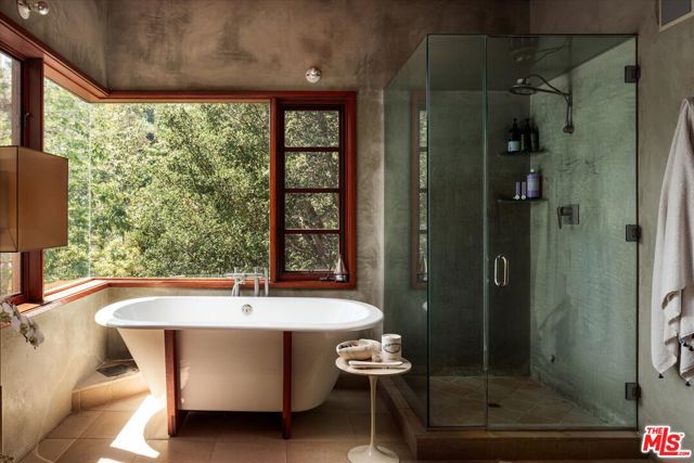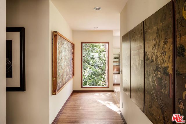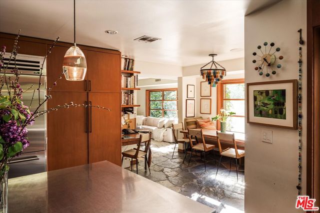 Nichols Canyon Paradiso is a rare Hollywood Hills sanctuary set on nearly an acre, a true fortress of privacy that blends Mid-Century Modern and architectural rigor with the elemental calm and soulfulness of Big Sur, evoking the serenity and romance of Post Ranch Inn. Encompassing approximately 6,000 square feet, the estate was reimagined in 1991 as a creative refuge for legendary Eagles songwriter JD Souther, who enjoyed the stand-alone creative studio on the property, and later the property was expanded by renowned architect Stephen Kanner, FAIA, resulting in a home that feels both deeply personal and quietly monumental. The architecture is a masterclass in organic design, with massive glass sliders, stone fireplaces, and natural materials that dissolve the boundary between indoors and out, framing lush, forested canyon views in every direction. The expansive grounds are a true canyon rarity, offering a resort-like experience with a swimming pool newly resurfaced in luxurious midnight blue micro pebble, winding walking paths, a private vineyard overlooking an outdoor feasting terrace nestled among fruit trees. Adding to this abundance, is a discreet, near-secret access point to the trails of Runyon Canyon Park just steps away. Designed to nurture creative life, the home features a professional-grade Chef's Kitchen, a state-of-the-art private screening room, and multiple inspired spaces for work and retreat, including the detached creative studio and a stone-and-wood guest cottage rich with character. The layout includes five generous bedrooms, anchored by a secluded primary wing that feels like a true retreat, often described as a personal "stairway to heaven." Currently owned by the creator and director of Netflix's Chef's Table, the property seamlessly reflects its owners' sensibility, balancing cinematic scale with intimate craftsmanship and soulful detail. Tucked into a coveted Nichols Canyon enclave, the estate offers a transportive, retreat-like atmosphere while remaining moments from the city's most celebrated dining and cultural destinations. This is a legacy property for those looking to check in anytime, but never leave.