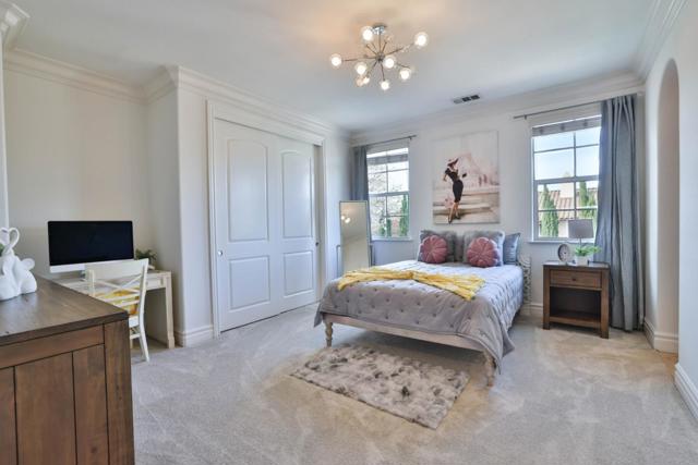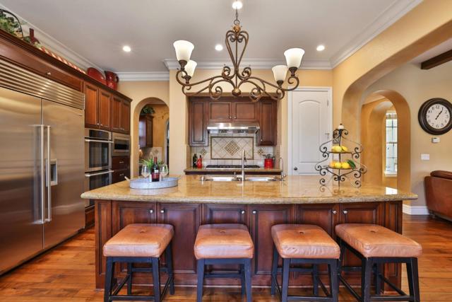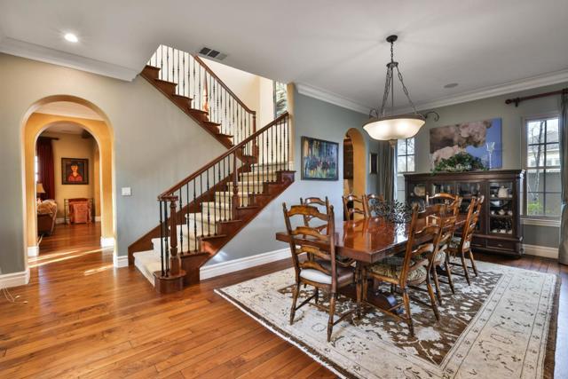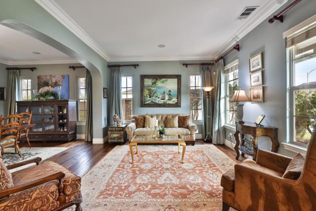 Nestled in the prestigious Vista Del Cerro community, this custom Robson Homes estate offers refined living in the heart of Almaden Valley. Built in 2006, this 4,368 sq.ft. residence boasts 6 bedrooms and 4.5 bathrooms, blending timeless craftsmanship with modern comfort. The home features a gourmet kitchen with custom cabinetry, granite slab countertops, a Sub-Zero refrigerator, butlers pantry with dual wine refrigerators, and rich European hardwood floors throughout the main living areas. Highlights include a dedicated office with French doors, an entertainer's interior courtyard with a fountain and fireplace, and a luxurious primary suite with an expansive walk-in closet and a spa-inspired bath. The resort-style backyard showcases a custom pool and spa, water features, outdoor kitchen, and low-maintenance landscapingideal for both entertaining and relaxation. Additional amenities include owned solar with Tesla backup batteries, EV charging, dual-zone HVAC, custom garage storage, and quality construction throughout. Conveniently located near top-rated Leland High School and Williams Elementary, with easy access to parks, trails, golf courses, shopping, dining, and Highways 101, 85, and 87, this exceptional home offers privacy, luxury, and convenience.