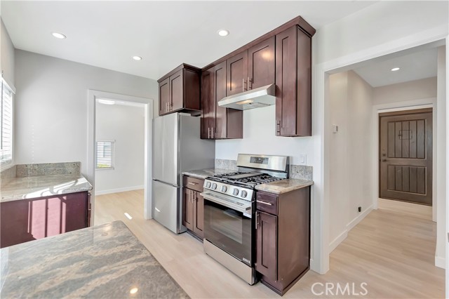 Experience modern Los Angeles living at its finest in this beautifully reimagined residence at 145 S Woods Ave. Offering an expansive backyard with incredible ADU potential—perfect for those looking to build equity or create a rental income stream. Meticulously remodeled and bathed in natural light, this home has been extensively refreshed highlighted by new flooring, fresh paint, and energy-efficient dual-pane windows throughout. The remodeled kitchen is a standout, boasting sleek updated cabinetry, elegant granite countertops, and stainless steel appliances including a 5-burner stove. Beyond the aesthetic upgrades, enjoy the comfort of central air and heat, a completely renovated bathroom, and the convenience of walk-in closets. The exterior is equally impressive, offering a huge yard, long driveway and a detached 2-car garage. This turn-key gem offers the perfect blend of contemporary style and future investment upside in a prime location.