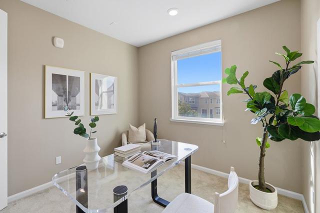 This stunning 2018-built KB Home townhouse perfectly balances modern elegance with functional design. With a desirable northeast-facing orientation, the residence is bathed in natural light through oversized windows, highlighting its airy, open-concept floor plan. At the heart of the home, the chefs kitchencomplete with sleek white cabinetry, a grand center island, quartz countertops, and premium stainless steel appliancesflows seamlessly onto a private balcony, ideal for morning coffee or evening relaxation. The luxurious primary suite features an expansive walk-in closet and a dual-sink vanity. For added versatility, the secluded ground-level bedroom suite is perfect for guests, a home office, or multigenerational living. Additional premium upgrades include a 3-zone HVAC system for personalized comfort, a true side-by-side two-car garage, and low HOA dues for added value and peace of mind. Unbeatable location: minutes from major tech campuses, BART, Great Mall, and major freeways. With access to top-rated Milpitas schools, this home offers a rare blend of style, convenience, and community.