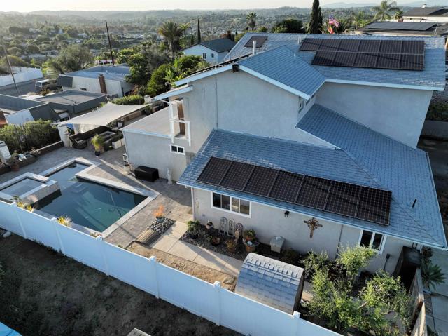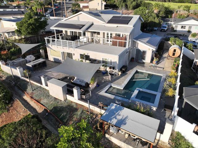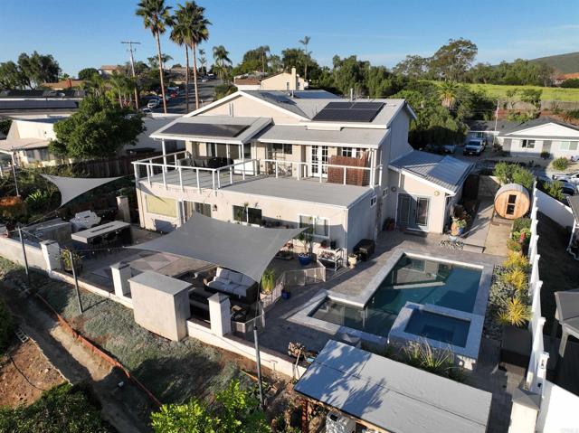 4 bed, 3 bath house with ADU. 3 bedrooms downstairs. Pool & Jacuzzi. Ocean view. No HOA. House was remodeled in 2018 with second story primary bedroom penthouse added boasting a palatial bathroom and giant primary bedroom retreat. Kitchen remodeled in 2025 and pool resurfaced in 2025. Solar added in 2019. Walking, mountain bike and hiking trails. Close to 78 and Rancho Santa Fe Rd, but not too close. Home is really ideal.