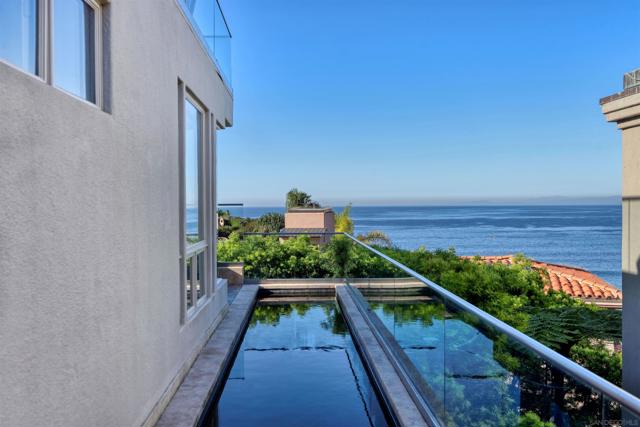 The perfect trifecta of walkable central Village location, breathtaking North Shore and coastal open sea views, and exquisite modern architecture for easy living at the sea. Set just above the waterfront on the shores of picturesque La Jolla Cove and Coast Walk, this immaculate residence offers sparkling nightlight coastline views spanning northward to Orange County's Dana Point. Designed to maximize enjoyment of its seaside environment, vast windows, doors and clerestory windows bring sunlight and the blue sea into almost every room of this prestigious home and open to view terraces with expansive spaces for lounging in the sunshine, lap pool swimming, barbecue cooking and dining. Leave your cars in the garage, for La Jolla's finest shops, restaurants and beach parks are just steps away with La Jolla's "Shores Village" within a mile. Interiors are immaculate and appointed with calming neutral tones with beautiful natural stone and woodwork. The large primary suite includes a gorgeous bathroom and seaside deck. Must see to fully appreciate this rare find.