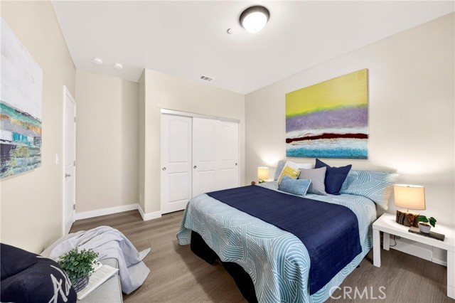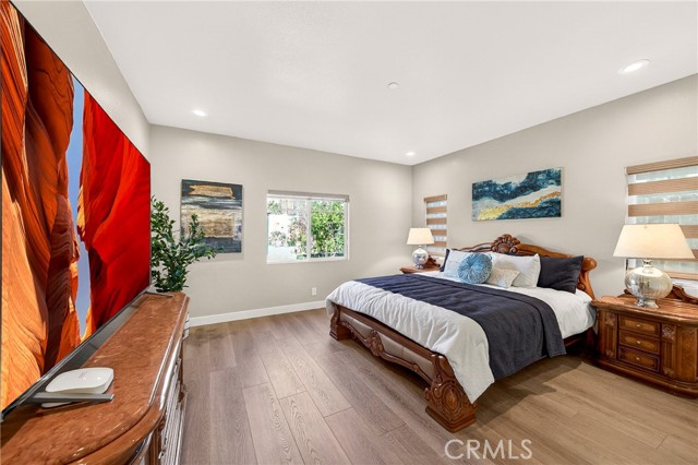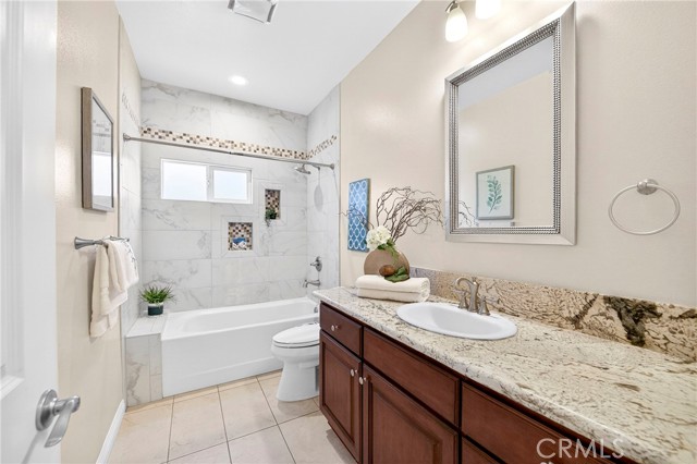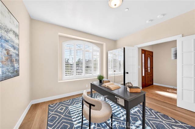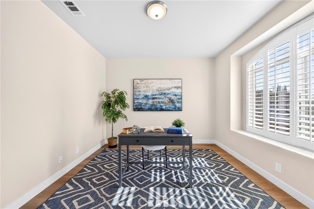 The spacious primary suite includes a walk-in closet and an en-suite bathroom with dual sinks. Near the entry, a dedicated office space provides flexibility for remote work or study. Two additional bedrooms are well-proportioned and offer comfortable living space.