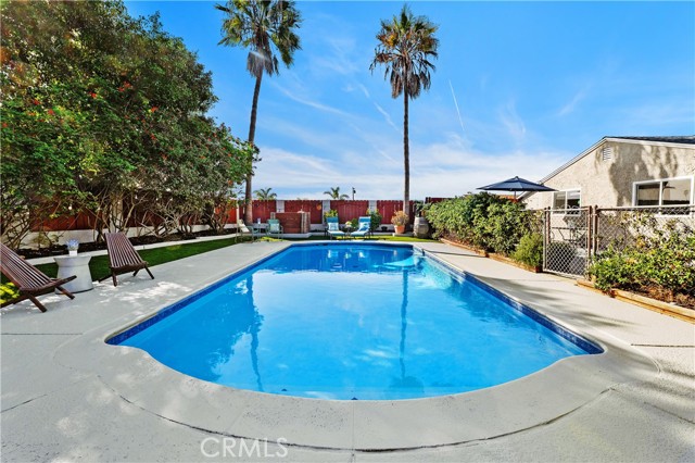 The backyard is thoughtfully designed for relaxation and hosting. A spacious patio provides an ideal setting for BBQs and outdoor dining, while the large in-ground pool has been refreshed with newer tile and plaster. The generous pool deck offers ample room for lounging, complemented by low-maintenance turf, a brick patio, and a fully fenced pool for added peace of mind.