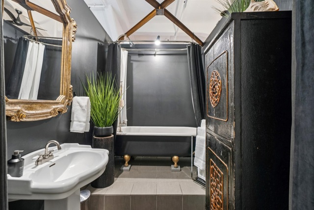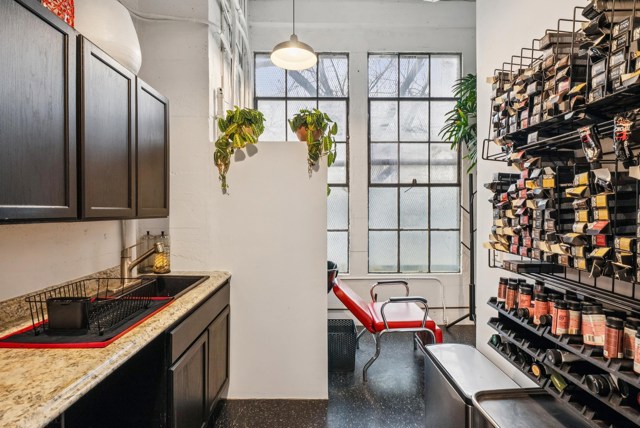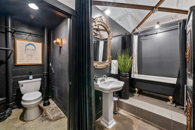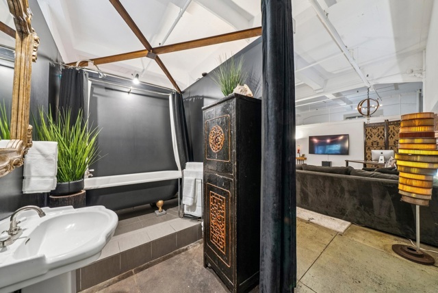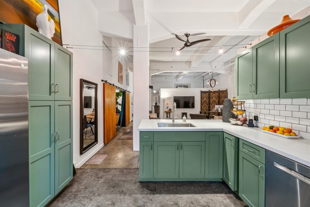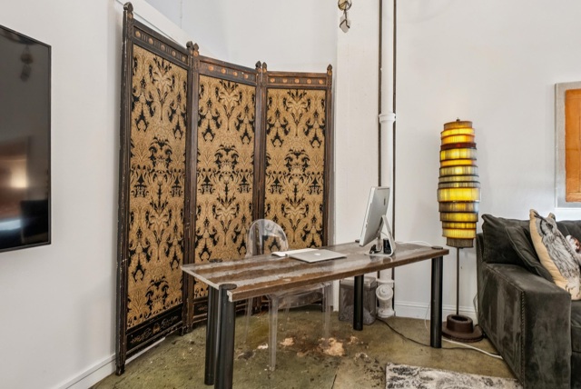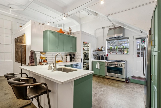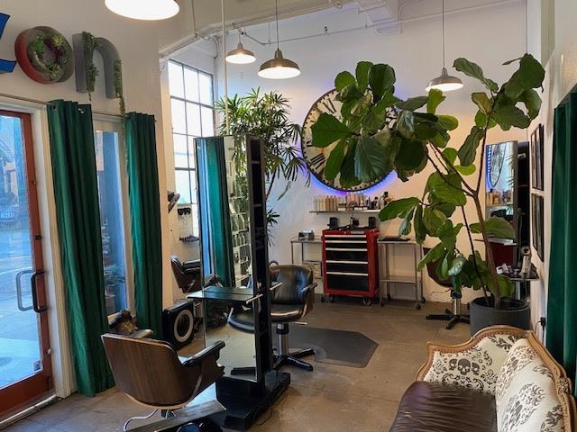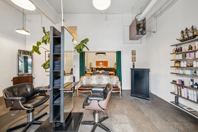 Unforgettable Industrial-Chic Live-Work Loft with Storefront in Historic Oakland Warehouse. Rare, true live-work opportunity offering authentic warehouse character and exceptional flexibility. Currently operating as a high-end salon with a stylish residence, this one-level space features real storefront frontage with roll-up door, dramatic ceiling heights, concrete floors, and bold architectural details throughout. The adaptable floor plan allows for a 3BR/2BA residence, a 2BR home plus storefront or studio, or a separate 1BR/1BA work or guest space—ideal for retail, art or design studio, photo/video production, café concept, or creative business. Behind the storefront, enjoy a remodeled kitchen, expansive open living area, curated designer finishes, and seamless indoor-outdoor flow to a private garden patio. Additional highlights include level-in entry, updated baths, two deeded parking spaces adjacent to the unit, and separate storage. A truly unique, non-cookie-cutter property in one of Oakland’s most dynamic creative neighborhoods. (Some images photoshopped to show potential usages)
