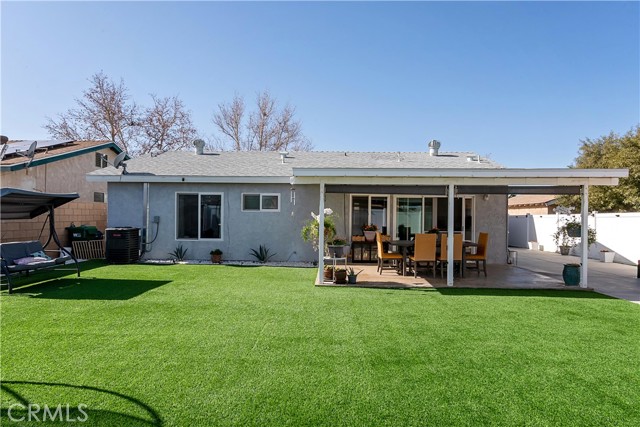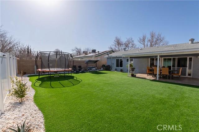 The large backyard with low-maintenance turf provides the perfect space for relaxing or entertaining. Energy-efficient features include solar and a Tesla charging setup, adding convenience and long-term savings.