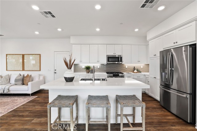 Curated for the Modern Buyer as the Ultimate At Home Sanctuary, 225 Denali blends Gorgeous Design Features with Supreme Functionality. Built in 2021 and Located in the Resort-Style Community of Serrano Summit this Highly Desirable Model is Located on a PREMIUM VIEW LOT with a Spacious Floor Plan spanning over 2,400sqft! Featuring FULLY PAID FOR SOLAR W/TWO TESLA WALLS this home is Designed w/Contemporary Luxury Details and an Open Floor Plan, Blending On Trend Style & Masterful Landscaping. As you enter, the Exquisite Details begin to impress with a Wood Look Luxury Vinyl Flooring and a Light & Bright Interior with Multiple Windows and Glass Slider Door enhancing the Modern Appeal of the home. The Gourmet Kitchen is a Chef's Dream...Fully Upgraded with Stainless Steel Appliances, White Cabinets, Designer Tile Backsplash and Quartz Center Island. Ideal for Entertaining, the Designated Dinning Area is Spacious Enough to Accommodate All Your Guests while Overlooking The Tranquil Backyard Views! On the second floor you will find 4 Bedrooms, 3.5 Bathroom and the Convenient Upstairs Laundry Room. Start your New Wellness Routine in the Primary Suite Retreat w/a Light & Bright Interior Overlooking Picturesque Mountain Views. The Tranquil Spa Like Primary Bathroom features a Relaxing Tub, Restorative Glass Shower, Upgraded Designer Tile, Dual Vanities, Custom Lighting, and a Spacious Walk In Closet w/ Custom Shelving. Upstairs on the 3rd Floor is the Multi Use Loft Ideal for entertaining w/Built-In Wine Fridge and an Expansive Terrace with Picturesque Mountain Views for an Elevated Serene Experience. Discover The Backyard Enclave Blending Indoor/Outdoor living with Neutral Tile Flooring, Custom Aluminum Trellis, Outdoor Fire Pit w/Custom Built In Seating, Artificial Turf, Raised Flower Bed, Bistro Lights, & a Curated Succulent Wall. This Smart Home's Tech Features for Modern Day Buyer Include 220V Outlet for EV Charging and Smart Home App Controlled Systems. Enjoy Exclusive Serrano Summit Access to the Summit Club, Pool w/ beach entry, Hydrotherapy Heated Spa, Cabanas, BBQ areas, & Pickleball Courts. NO MELLO ROOS! THIS ONE IS SPECIAL..COME SEE IT IN PERSON!