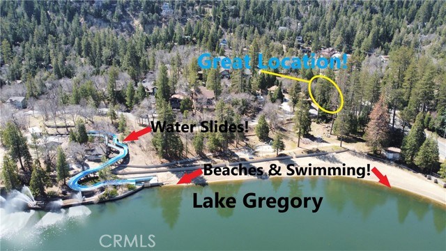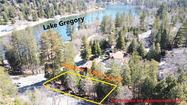 Lovely lakeside corner lot with serene lakeviews! Located directly across from beautiful Lake Gregory beaches with swimming, boating, water slides and hiking trails just right across the street. Just a block or so to downtown Crestline shops, dining and entertainment. Approx. 7500 SQ FT of gentle land with beautiful pines, cedars and oaks all around. Great street frontage on both San Moritz Drive and Lake Gregory Drive. Ideal for primary residence, 2nd home or vacation rental. All utilities (water,sewer,gas,electric,phone,high speed internet,cable) are all conveniently located at or near the street. Design your mountain dream home and come enjoy the mountain lifestyle. Address is estimated only for location purposes only and has not been assigned. Survey & Topography have been completed and some property corners are still visible. Don't miss out on this unique opportunity, make your offer today!