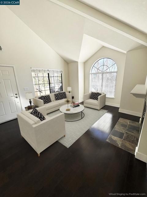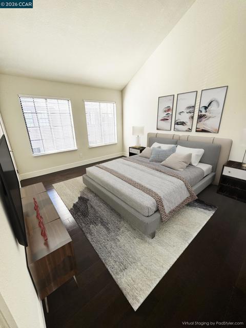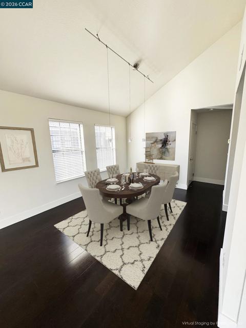 Open Saturday 2/7 1-4pm; Beautifully appointed home with striking high ceilings, views and an abundance of natural light. Desirable end unit with lots of windows and no neighbors above or below. The updated kitchen features white cabinetry, stainless appliances, and pantry. Two walk in closets in the oversized bedroom are a dream come true. Hardwood flooring throughout. Washer, dryer and refrigerator included. Enjoy hillside views & privacy in the peaceful Canyon View community. Amenities include Security Guarded Gate, 2 community pools & spas, tennis courts, fitness center and lovely walking paths. Conveniently located near Whole Foods, Trader Joes, City Center Shopping, Bishop Ranch Office Park and easy freeway access. Note: some photos include virtual staging. Copper Ridge HOA has monthly fees of $535 which include water and garbage services. A second HOA, Canyon View is $1,000 annually and includes 24/7 manned gate access, landscaping, and security. Photos with furniture are virtually staged.