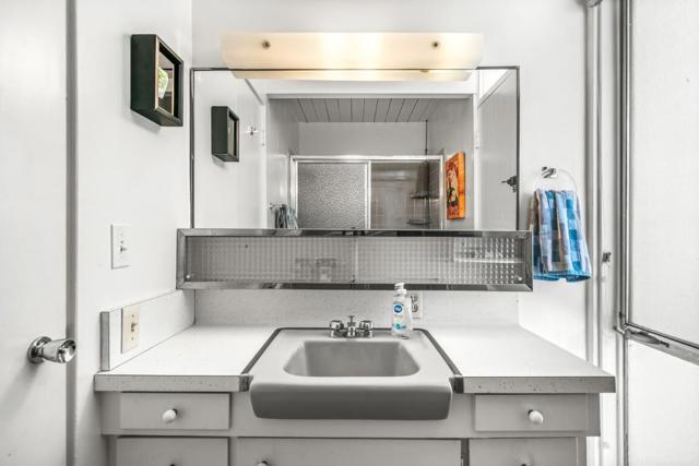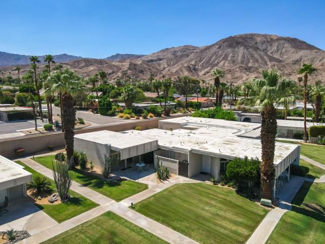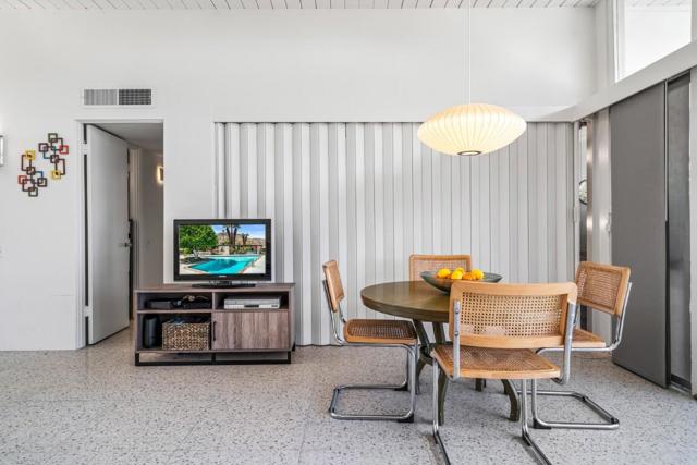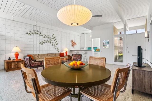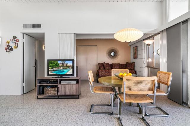 Live your mid-century dream! This 2 BR / 2 BA condo, offering 1,045 sq. ft., is located in the iconic Sandpiper community of Palm Desert. Designed by William Krisel and built in 1960, this home sits within an HOA that carries a historic designation and qualifies for the Mills Act program, which can provide reduced property taxes.High ceilings adorn the major living spaces, where all the original architectural details remain intact: exposed concrete block walls, clerestory windows, tongue-and-groove ceilings, and a flexible accordion wall in the guest bedroom that allows the space to expand into one large great room. The open floor plan is finished with terrazzo tile throughout and features an original kitchen with pristine vintage cabinets and Formica countertops.The primary suite includes an en-suite bathroom and private patio access, while the second bathroom serves guests and the additional bedroom/flex room.A poolside patio provides a serene retreat with views overlooking the pool, a lush greenbelt, and the northern mountains. The unit also includes a designated covered carport space. The HOA permits short-term rentals of less than 30 days with no minimum stay requirement, making this an ideal vacation retreat or investment opportunity.Just minutes from the shopping and dining of El Paseo, hiking trails, and more--come experience the good life!