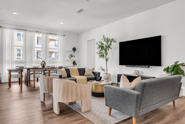 Newly built in 2022 a beautiful modern condo with highly upgraded kitchen cabinets, countertops, backsplash, flooring and huge outdoor patio/balcony for BBQs, and lounging. Very spacious open concept kitchen, dining room, and living room with an office nook, the perfect size for remote working. The primary bedroom is a private, spacious, serene hideaway with a custom closet, dual sink, en-suite bathrooms. Side by side 2 car garage. Metro crossing located across Warm Springs Bart Station. Right outside the building's door, you will find a park, plenty of guest parking, and a beautifully cared for community with a pool.