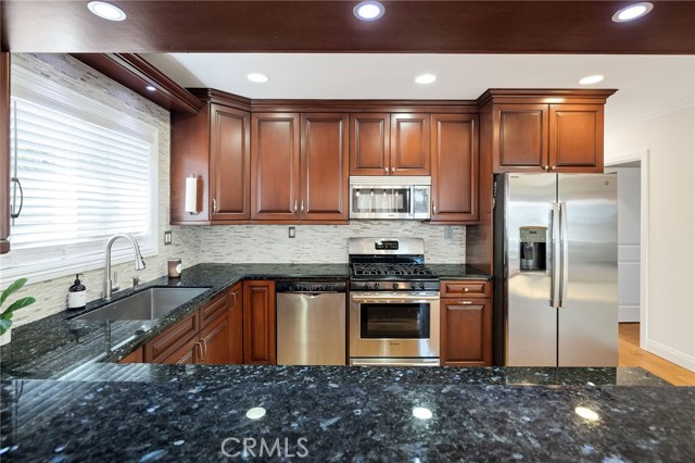 Incredibly renovated 3 bedroom home on a huge lot with RV parking. It appears previous owner removed a wall to create a very enjoyable family room - it shouldn't be hard to have a contractor put the wall back. Pull up in front and feel the curb appeal - step inside into the cozy living room with engineered hardwood floors, recessed lighting and a bay window. Bedrooms are spacious with recessed receptacles for TV or gaming. Bathroom is remodeled with extra long granite counters, jetted spa tub, separate walk in shower with a seat, and more. The gorgeous open kitchen features granite counters, stainless built-in appliances, custom wood cabinets, and endless counter space for the chef in the family. A breakfast bar connects the kitchen to a formal dining room adjacent - perfect for the large family meal or social get together. You’ll find upgrades throughout the home - new tankless water heater, recessed lighting, crown molding, newer doors, gimbal trim lighting, fresh interior and exterior paint, newer windows and more. Relax on the beautiful deck while reading a book or sipping an iced tea or glass of wine. Look out onto the large backyard and imagine all the possibilities for outdoor enjoyment with room for a pool, ADU’s, or maybe even a pickle ball court (verify). Double detached garage with auto opener and attached unfinished storage rooms. Driveway is wide and long enough for multiple cars, a large RV, or all your toys. Conveniently located minutes from the freeway, Harbor UCLA Hospital, restaurants, shopping and just a 25 minute ride to the beach. What are you waiting for? Don’t miss your opportunity to call this very special home!