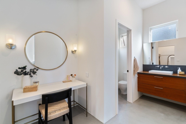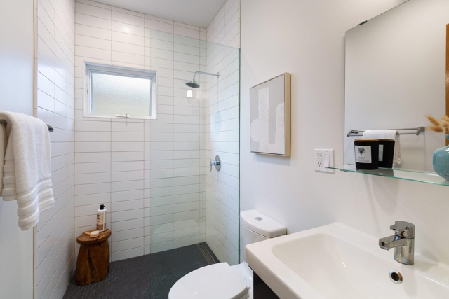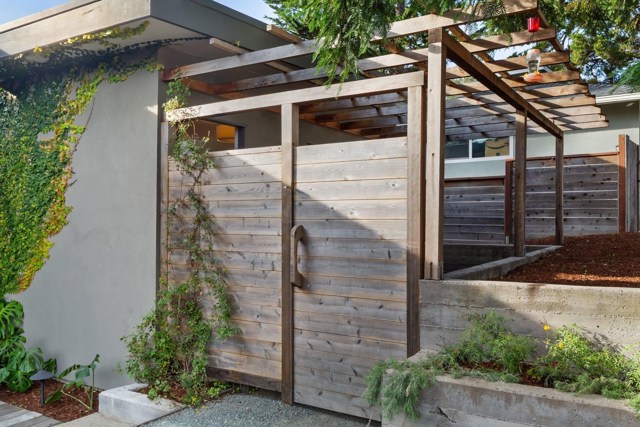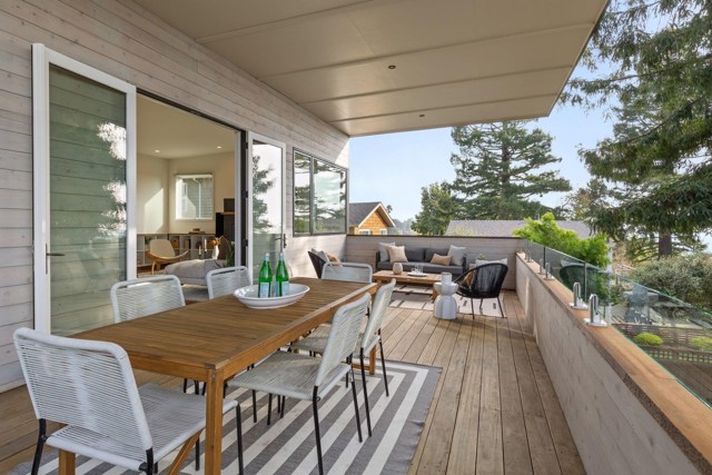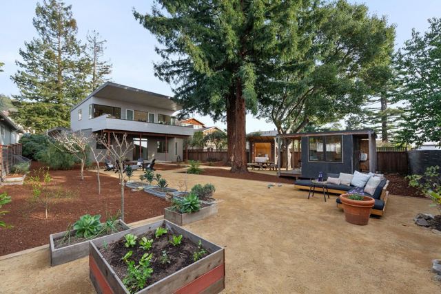 Set back from the street on a sun-drenched 10,000+ sq ft lot (per public record) & nestled among redwood trees, 7981 Terrace is truly an exceptional property. Architect-designed & built in 2017, this mid-century modern influenced home offers 4 beds, 3.5 baths, and attached 1-bed/1-bath ADU. Step inside & your eyes are drawn straight through glass double doors to the breathtaking backyard & the elegant stairway to the second level. The main floor features a luxurious primary bedroom w/en-suite bath, 2 additional beds & full bath and polished concrete floors. Ascend the stairway & be delighted by the open floor plan & many windows. The gourmet kitchen boasts beautiful quartzite counters & abundant space for any chef. The living room centers around a Rais wood-burning fireplace, while a covered deck w/built-in gas BBQ beckons for indoor-outdoor entertaining. An additional flexible room serves perfectly as a bedroom or office, plus a convenient half bath. The level, park-like backyard must be seen to be believed—offering endless possibilities for hide & seek, gardening, & relaxation. 2 outbuildings, one w/a full bath, provide versatile bonus space. The 1-bed/1-bath ADU mirrors the sophistication of the main house & can be rented for income or connected to the main house. A must see!