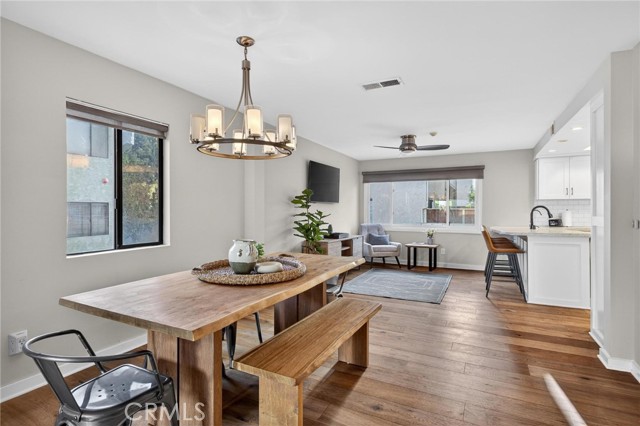 The main level opens to a bright, open-concept living and dining area that connects seamlessly to an oversized private patio—perfect for al fresco meals or laid-back gatherings. The spacious kitchen balances style and functionality, with ample cabinetry, generous counter space, and a natural flow into the living area.
