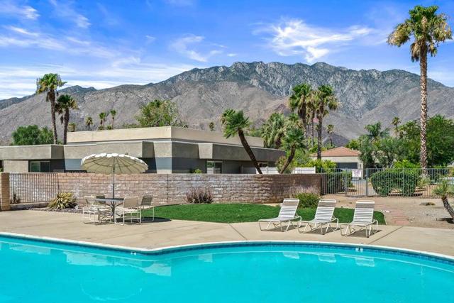 Biggest floor plan in Sunrise Palms... this recently remodeled, furnished condo features two bedrooms and two full bathrooms, solar panels, a state of the art Bosch air conditioner, and upgraded windows and sliders throughout. Walls have been removed to create an open living space with a modern kitchen, extended dining area, high ceilings, and a built-in LED fireplace. The master bedroom has a large walk-in closet that could also be used as a dressing area. The entire property was recently re-plumbed as well. There is a walled-in yard with mountain views plus, you have your own attached 1-car garage. Sunrise Palms is a gated community close to downtown Palm Springs with 8 pools and spas, tennis and sport courts, walking trails, greenbelt areas, and big mountain views!