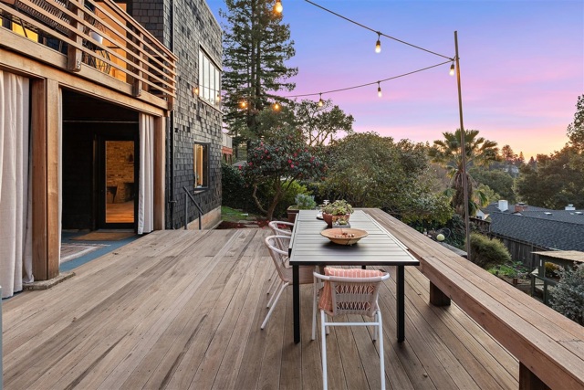 This soulful and charming family home awaits just up a short path from Montclair Village: framed by a towering pine in front and generously terraced outdoor spaces in back, it is fantastic for both living and entertaining. The floor plan is perfect: 3 bedrooms and 1.5 baths, plus a sun-drenched extra space on the second level, ideal as an office or cozy hangout. Upon entering from the generous front patio, you’re immediately drawn to the spacious living room showcasing vistas of blue skies, camellias in bloom, and a partial view of the Golden Gate Bridge in the distance. There’s a formal dining room with French doors to a deck overlooking the dreamy backyard. Also downstairs are a thoughtfully updated kitchen, a cute ½ bath with new decorative floor tiles, and an attached 2-car garage. Upstairs are 2 bedrooms (the master has 2 closets), which both have access to the sunroom, and a full bath sporting a stylish remodel with designer tiles and sparkling light fixtures. On the lower level is the 3rd bedroom with a brick fireplace, which would make a comfortable guest room or private home office with direct access to the spacious deck with charming cafe lights and the peaceful backyard. Close to Montclair Element., library, shops and restaurants.Short drive to Rockridge, BART to SF!
