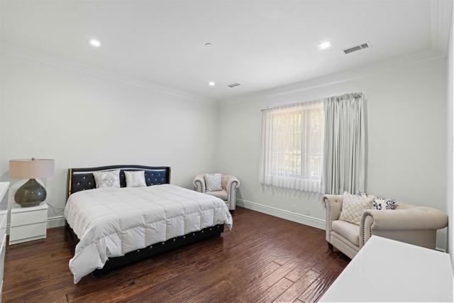 Welcome to The Bacara House on Del Mar Mesa. A one-acre estate offering panoramic sunrise views over the canyon and The Grand Golf Club. With over 8,100 sq. ft. of custom designed living space, this residence is built for both everyday comfort and entertaining. The main house features five bedrooms, an executive office, a playroom, maid’s quarters, and a total of six full bathrooms, one half bath, and an additional powder room. A detached guest suite includes a private bedroom with ensuite bath, walk-in closet, and fireplace, ideal for extended stays or live-in guests. Enjoy a true resort-style backyard with a pool and spa, outdoor bar, fireplace, multiple lounge and dining areas, and a spacious greenbelt perfect for kids and pets. Car enthusiasts will love the attached 4+ car garage and a detached RV-sized garage, perfect for boats, trailers, or a collection of toys. Located just minutes from One Paseo, The Grand Del Mar, and the three-Michelin-star Addison. Additional highlights include secure gated entry, a long private driveway, and a quiet cul-de-sac location for added privacy. Solar panels were installed in 2023 with a PPA at $700/month to be transferred to the new buyer.