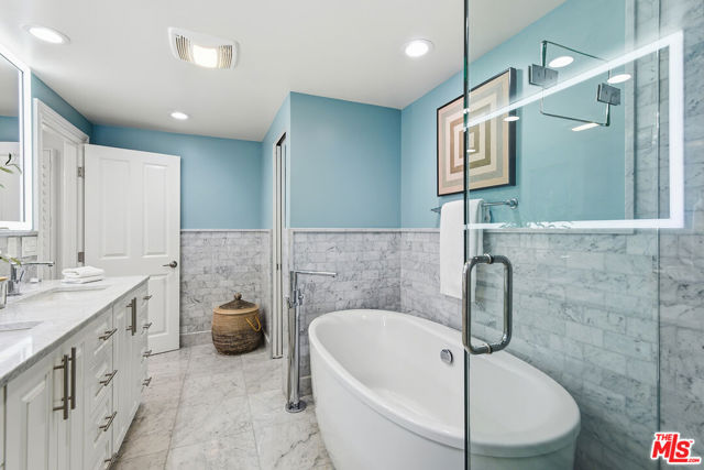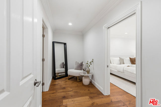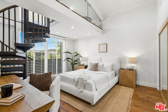 Stunningly renovated townhome overlooking a beautifully manicured courtyard, tucked away on a quiet cul-de-sac in the heart of Silicon Beach. This one-of-a-kind 3-bedroom, 2.5-bath residence offers an exceptional blend of privacy, space, and modern design, complete with a direct access private two-car garage and EV charging. Inside, the bright and airy layout features terrazzo-style tile and beautiful hardwood floors throughout, soaring ceilings, recessed lighting, and custom built-ins. The spacious living room opens directly to a private patio, creating seamless indoor-outdoor living ideal for relaxing or entertaining. The reimagined chef's kitchen is a true highlight, featuring quartz countertops, a custom backsplash, premium Thermador and Sub-Zero appliances, abundant custom cabinetry, and an adjacent dining area. A dedicated beverage station with wine fridge is perfect for hosting or everyday living. The lower level includes a well-appointed bedroom and powder room, while the upper level offers two massive bedrooms plus a versatile loft/bonus space. The expansive primary suite is truly unique, boasting a large walk-in closet with custom built-ins and a luxurious, spa-inspired en-suite bathroom with dual vanities, a separate shower, and a deep soaking tub. The second upstairs bedroom enjoys peaceful courtyard views, its own private, tree-shaded balcony, and a distinctive spiral staircase leading to a versatile bonus loft. Additional highlights include an upstairs laundry room, ample storage, central air and heat, a tankless water heater, and access to the community pool and lushly landscaped courtyard. Ideally located just minutes from the Marina, the beach, bike paths, dining, and all that Silicon Beach has to offer.