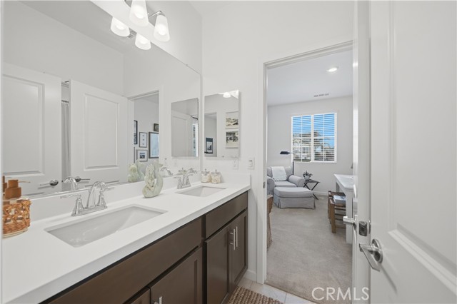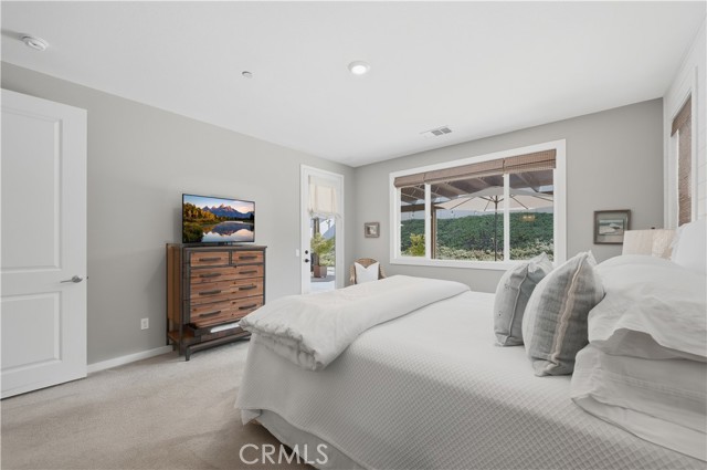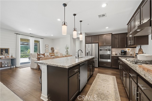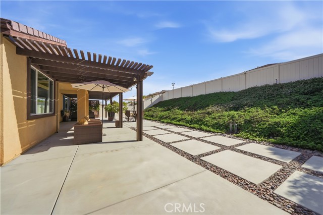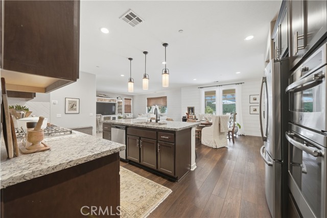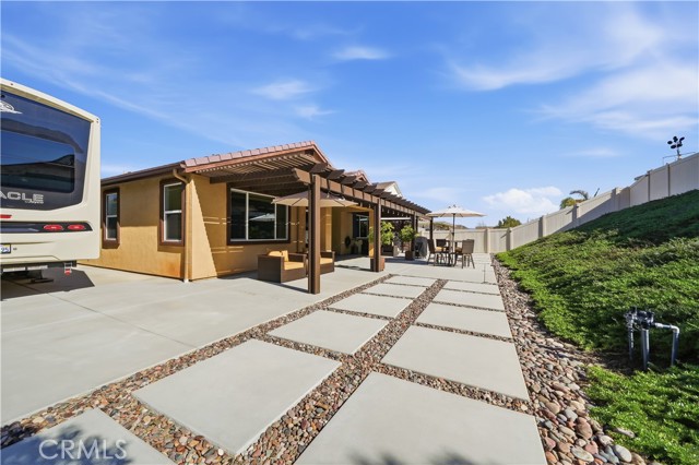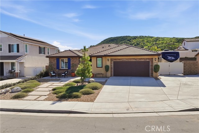 Tucked away in Menifee's "Silver Trail", a rare and intimate enclave of just 30 homes set against the foothills, this single-level residence sits at the end of a quiet cul-de-sac and delivers the perfect blend of privacy, space, and functionality. With over 2,000 square feet, 3-bedrooms & 3-bathrooms, this thoughtfully designed home offers $77,000 in upgrades and features gated RV parking with hookups—a standout bonus in a community known for its oversized lots. Inside, tasteful upgrades elevate the open-concept floor plan, including granite countertops, shiplap accent walls, pendant lighting, and custom window coverings throughout. The kitchen is the heart of the home, showcasing a large island with bar seating, high-end appliances, a pantry, and seamless flow into the dining and family rooms—ideal for everyday living and entertaining alike, with easy access to the backyard patio. The spacious primary suite offers private patio access and a well-appointed bathroom with dual sinks, a separate soaking tub and shower, and a generous walk-in closet. Secondary bedrooms are thoughtfully positioned away from the primary suite for added privacy. Outside, enjoy beautifully landscaped grounds with a covered patio and multiple seating areas designed for relaxation and gatherings. Adding even more value, the property offers room for an ADU with multiple plans already pre-approved by the City of Menifee—a rare opportunity in an already exceptional setting. Come take a look, we think you'll agree... this is home!