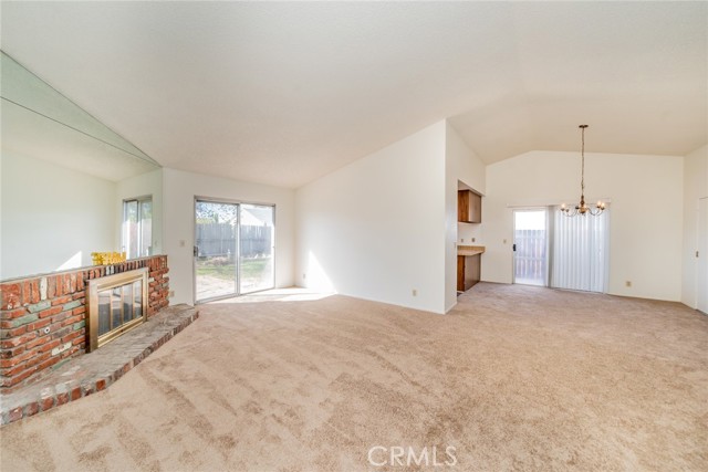 The large living room is the heart of the home, offering cathedral ceilings and a cozy fireplace, ideal for relaxing evenings or entertaining guests. The well-designed floor plan provides an easy flow between living spaces, with plenty of natural light.