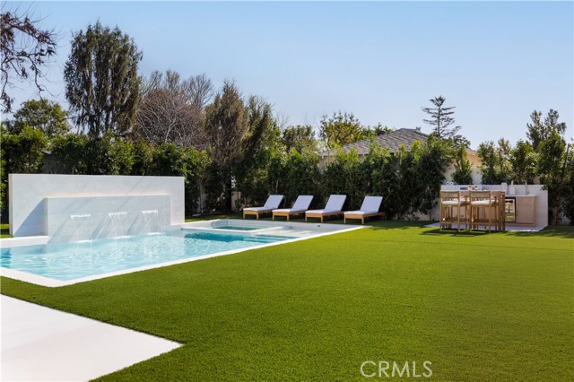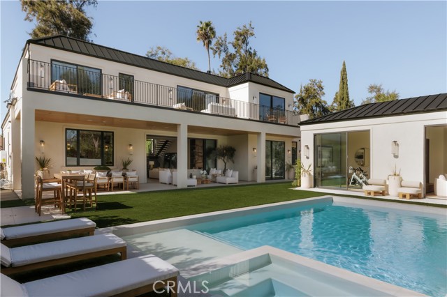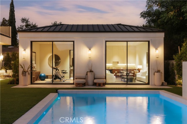 Stunning modern French–inspired estate offering refined luxury and exceptional craftsmanship in a prime Sherman Oaks location. Thoughtfully designed by Sophea Interior Design, this residence reinterprets classic French maison elegance through a clean, modern lens, creating a timeless yet contemporary living experience. Spanning over 5,300 sq ft, the home features a designer chef’s kitchen with top-of-the-line Miele appliances, an expansive center island with dual-sided seating, walk-in pantry, and abundant custom storage. The open-concept living area is anchored by a dramatic floor-to-ceiling marble fireplace and expansive pocket doors, seamlessly blending indoor and outdoor living. The luxurious primary suite is a private retreat, complete with a terrace, mini bar, makeup area, spa-inspired bathroom, and dual walk-in closets. Resort-style grounds include a pool and spa with water feature, built-in BBQ, lush landscaping, and a one-bedroom ADU with kitchenette—ideal for guests or extended living. Private and gated with impressive street presence, the home is located on a desirable tree-lined street, just minutes from Harvard-Westlake, Campbell Hall, Erewhon, Equinox, Sugarfish, Sportsmen’s Lodge, and Ventura Boulevard’s premier shopping and dining. Additional features include Control4 smart home system, security cameras, and surround sound throughout.