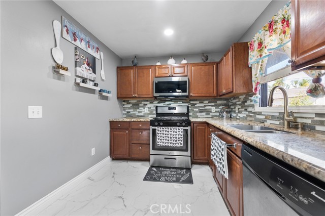 Welcome to this single-story home! Three bedrooms(could easily be 5BR), offering a den with a fireplace, and a bonus room. A 2nd bathroom adds versatility (it is not known to permitted but done in a workmanlike manner). This home has a functional layout ideal for comfortable living and entertaining. Beautiful marble flooring, creating a bright and elegant feel. Two of the bedrooms provide direct backyard access, adding convenience and flexibility. Situated on a desirable corner lot of approximately 10,454 square feet, the property features a detached two-car garage and an expansive backyard designed for gatherings and outdoor enjoyment. The yard includes a built-in outdoor bar, abundant entertaining space, and a pool that is not functional. Conveniently located near shopping, schools, and everyday amenities, this home combines space, location, and lifestyle.