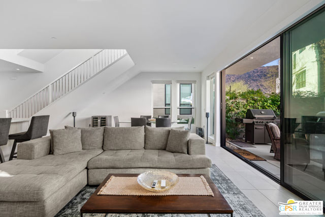 Spectacular end unit at popular & sought after Cody Place. Offering voluminous and refined spaces, this townhome lives like a single-family home but offers the convenience of a low maintenance yard and a "lock and leave" gated community close to downtown shops, coffee houses and eateries! Incredible open floor plan with a private patio, 2 Master en-suites and an incredible covered roof top party or relaxation deck cozy enough for two but large enough for dozens. Some furnishings available outside of escrow. Clean as a whistle so you can move in, unpack and enjoy the Palm Springs lifestyle you deserve. Just steps to the community pool that you do not have to maintain. Minutes to PSP International and freeways for weekend commuters.