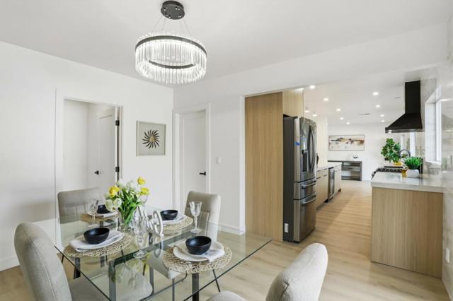 Nestled in the desirable Alum Rock foothills, this beautifully renovated 1,486 sq. ft. home offers a perfect blend of modern luxury and peaceful living on a quiet dead-end street. From the cozy front porch, step into an inviting living room flooded with abundant natural light from large windows and skylights that highlight the elegant luxury vinyl flooring and smooth-textured walls throughout. The stunning gourmet kitchen boasts brand-new cabinetry, quartz countertops, high-end appliances, and a dedicated wine fridge, complemented by a separate dining room and a dedicated laundry room with a wash sink. The thoughtful layout provides a private master suite with a large bay window and an elegant en-suite bath, alongside two additional spacious bedrooms and a modern hallway bathroom. Outside, the expansive 10,000+ sq. ft. lot includes professional landscaping, a detached garage, and a versatile bonus cottage ideal for a home office or studio. With significant potential for an ADU and a prime location near premier dining and shopping, this property represents a rare and versatile opportunity for any homeowner.