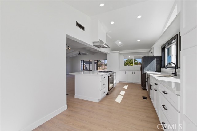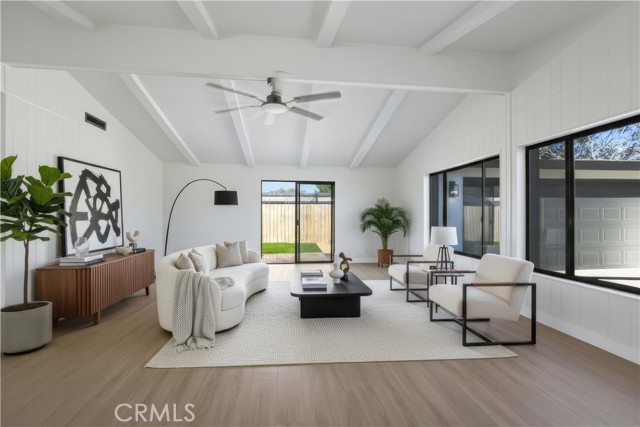 Fully remodeled 3-bedroom 2 full bath home with a modern open-concept design. Featuring vaulted ceilings, a brand-new kitchen with an oversized island, updated bathrooms, new flooring, windows, and finishes throughout. Enjoy a low-maintenance backyard with new concrete patio and turf. Situated on a corner lot with a level 40+-foot driveway and backing to a park—no rear neighbors. Turnkey, stylish, and move-in ready.