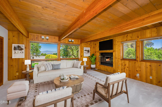 Hilltop Retreat with Panoramic Views | Private Camarillo Estate - Perched atop approximately 23 acres, this 2,900 sq. ft. hilltop home captures breathtaking 270-degree views across Camarillo city lights, the Santa Monica and Los Padres Mountains, and out to the Pacific Ocean and Channel Islands National Park--creating a true 'top-of-the-world' setting that's hard to duplicate. With three spacious bedrooms and three bathrooms, this private retreat is designed to embrace indoor-outdoor living and the natural beauty that surrounds it. Freshly painted inside and out, the home features brand-new carpeting, vinyl plank flooring, and new countertops in all three bathrooms. The open-concept floorplan is highlighted by vaulted ceilings and walls of windows that flood the living spaces with natural light while showcasing the view from nearly every angle. The main level includes a bedroom and full hall bath with a walk-in bathtub that could easily be converted to a walk-in shower. Downstairs, the family room adds rustic charm with knotty pine walls, a wood-beamed ceiling, and a cozy gas fireplace--perfect for relaxing evenings. Upstairs, two expansive bedroom suites with private on-suite baths offer dramatic vistas in multiple directions--Somis and the Los Padres Mountains to the north, and the Santa Rosa Valley and Santa Monica Mountains to the south. Step outside to a large view patio ideal for entertaining, enjoying peaceful ocean view sunsets, or simply taking in the serenity and wide-open skies. The land is a standout feature, offering exceptional versatility and space to create your vision--expanded orchard potential, equestrian use, other animals, extensive vegetable gardens, workshop/outbuildings, and more. An expansive attached two-car garage includes indoor workshop space and additional storage, providing excellent flexibility for hobbies, projects, equipment, and ranch functionality. Additional amenities include two propane tanks and a private generator. Located just minutes from town, you'll enjoy the best of both worlds: a secluded hilltop setting with quick access to Camarillo's shopping, dining, schools, and convenient routes to Ventura, Santa Barbara, and Los Angeles. Open Space (OS) zoning may allow for a variety of uses--buyer to verify with Ventura County regarding permitted uses, improvements, and any future plans. Don't miss this rare opportunity to own a truly unique hilltop property just outside Camarillo.