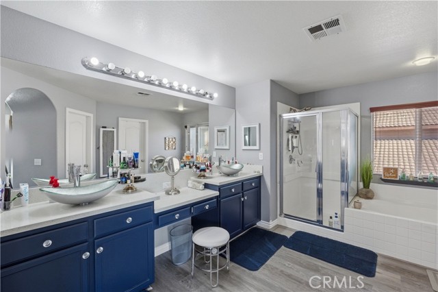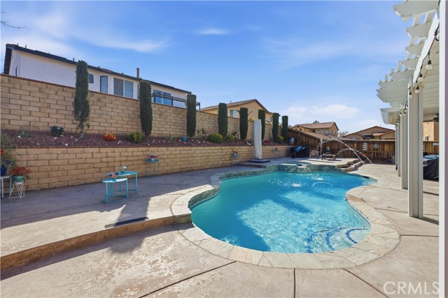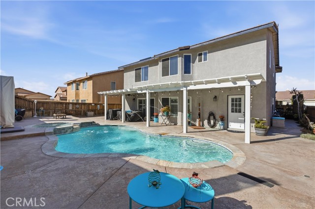 Welcome to this beautifully upgraded 5-bedroom, 4 bath residence offering 3,444 sqft of spacious living in a prime Victorville location. Designed for comfort and versatility, this home features a convenient first-floor bedroom, ideal for guests or multigenerational living.Step inside to discover an open and functional layout complemented by newly updated bathroom flooring along with newly installed quartz countertops along not to mention modern sinks. Abundant natural light throughout. The home is equipped with solar panels, providing energy efficiency and long-term savings. Entertain year round in the backyard oasis complete with a sparkling pool and relaxing jacuzzi, covered patio adding extra in comfort in the summer heat.Perfect for gatherings or unwinding after a long day. The 3 car garage boasts a sleek epoxy-coated floor, adding both style and durability. Located close to shopping, dining, schools, and commuter routes, this home combines space, upgrades, and location making it a true Victorville standout. Don’t miss the opportunity to own this exceptional property.
