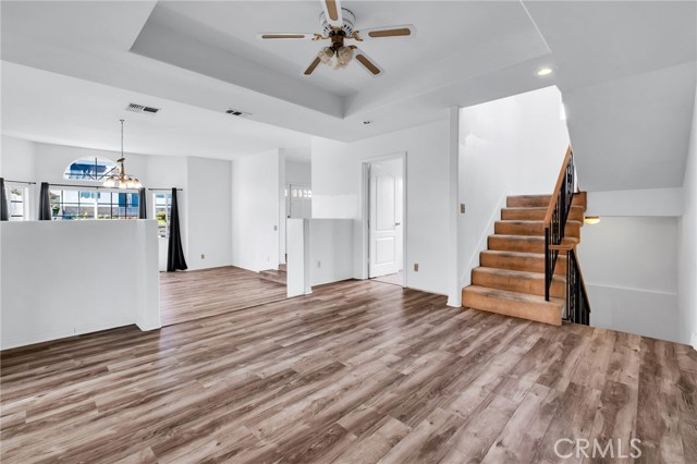 Sliding glass doors from both the primary bedroom and the upper staircase landing open to an enormous entertainment deck, where morning sunshine and expansive city and mountain views create a truly special outdoor living experience. With multiple outdoor spaces, this townhome offers remarkable versatility and rare indoor-outdoor potential.