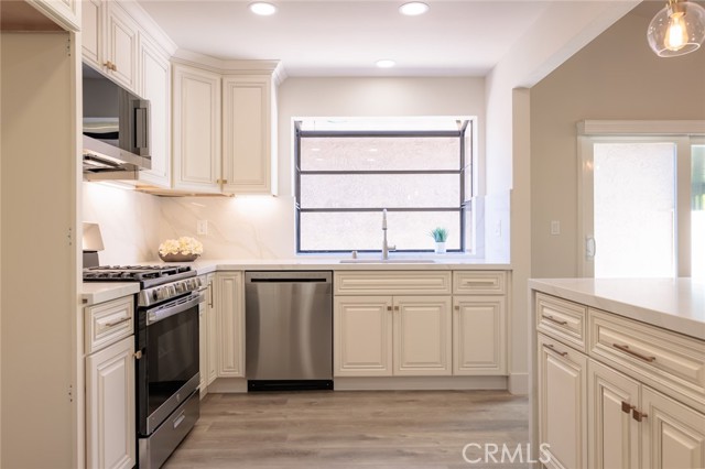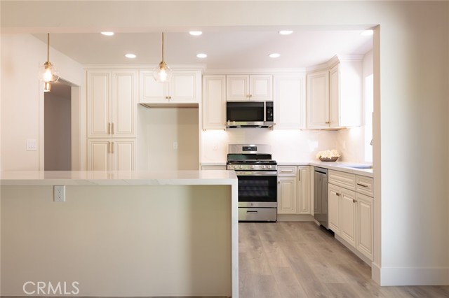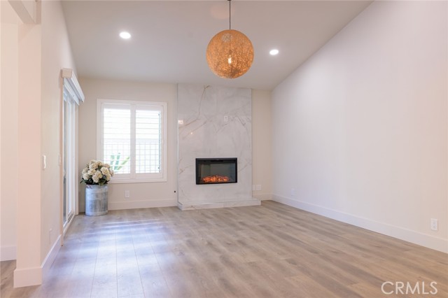 The home has been carefully updated throughout, featuring a new kitchen with new countertops, modern cabinetry, stainless steel appliances, recessed lighting, and a functional island that opens to the dining area. Both bathrooms have been remodeled with updated finishes and fixtures. Additional improvements include new flooring, new wall texture and fresh interior paint throughout, new interior doors, new light fixtures, and a new electric fireplace in the living room, creating a comfortable and welcoming atmosphere.