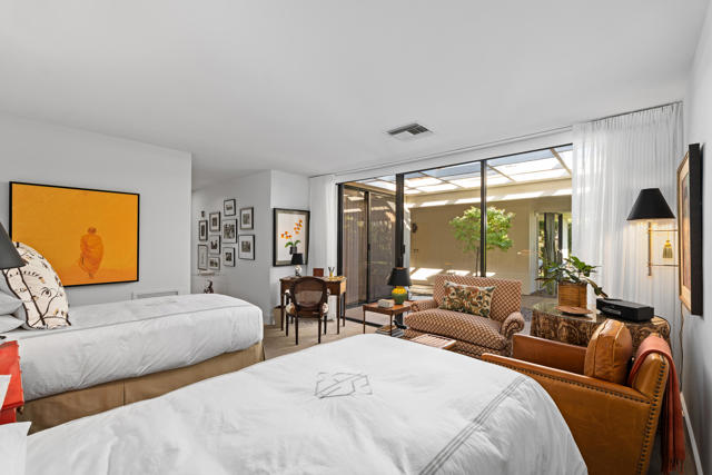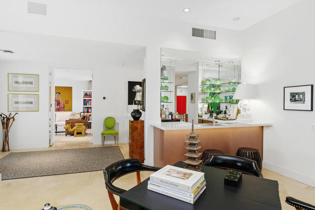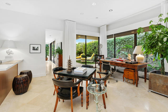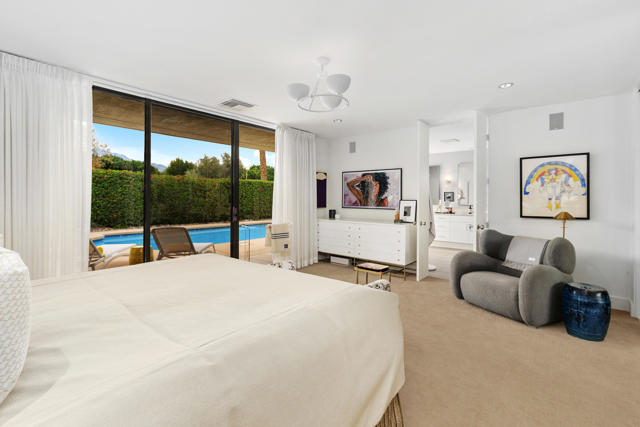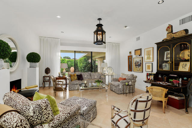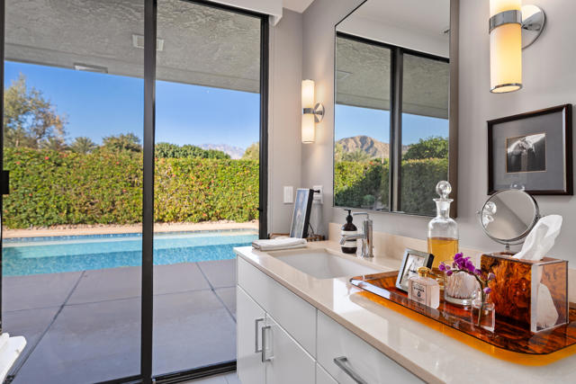 Incredible privacy and panoramic mountain views define this updated desert retreat, ideally located within the Springs Country Club. This walled and gated 3-bedroom, 3-bath Pinehurst model offers refined indoor-outdoor living with a private pool and spa.The open-concept living and dining areas feature 10-foot ceilings and abundant natural light. A fireplace and built-in bar provide functional focal points for entertaining or relaxed everyday living. Clean lines and thoughtful design create a calm, sophisticated atmosphere.The kitchen features quartz countertops, custom cabinetry, Sub-Zero refrigeration, a built-in wine refrigerator, and a spacious pantry. A light-filled breakfast room opens to the backyard, where mountain views frame the Pebble Tec pool.The primary suite offers a walk-in closet and a spa-style bath with modern finishes and a freestanding soaking tub. A second primary ensuite enjoys access to a private front courtyard. A third ensuite bedroom, currently serving as a den, provides flexible living options to suit your lifestyle.Recent upgrades include updated pool tile and Pebble Tec, a variable-speed pool pump, two new 50-gallon water heaters, a Moen Flow smart water monitor and shutoff, new laundry equipment, and 31 owned solar panels for impressive energy savings.Residents of The Springs enjoy gated security, social club membership with fitness, tennis, pickleball, and bocce, cable and internet, exterior maintenance including roof and paint, and exterior landscaping beyond the courtyard walls.No open houses will be scheduled. Please call for appointment.