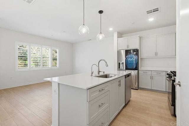 Welcome home to this charming end-unit townhome, built in 2022, ideally located within the highly sought-after Citro Community of Fallbrook. This beautiful home features an open-concept floorplan with 3 bedrooms plus loft, 2.5 baths, a chef’s kitchen with island and stainless steel appliances, a spacious great room, and an attached two-car garage with ample storage and direct kitchen access. The primary suite offers a large ensuite bathroom with a nice walk-in closet. Residents of the Citro Community enjoy 24/7 security, a resort-style pool and clubhouse, community garden, parks, dog park, bocce ball court, and miles of hiking and walking trails surrounded by avocado and citrus groves. Ideally located near schools, wineries, golf courses, and just minutes from the I-15 freeway, this exceptional home offers the perfect blend of comfort, elegance, and Southern California lifestyle. Dreams come true at 35131 Rangpur Lane!