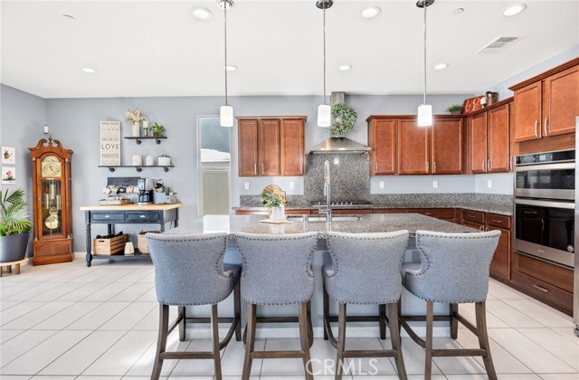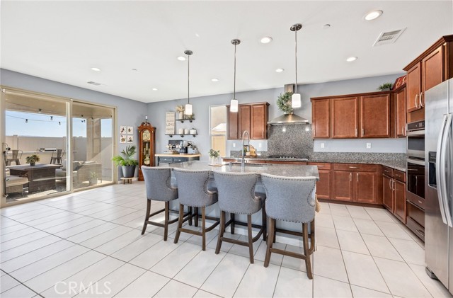 Well-appointed kitchen features a large center island with breakfast bar, beautiful granite countertops, tons of cabinets for ample storage, walk-in pantry and adjoins the family room making this ideal for entertaining and gatherings.