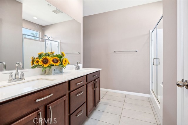 The expansive primary suite is a true retreat, offering generous space, a large walk-in closet, and a beautifully appointed bath with dual sink vanity.