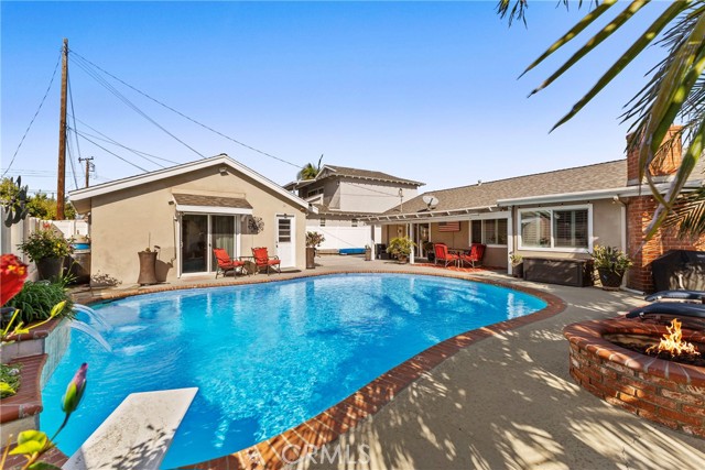 Step outside to your private backyard retreat, complete with a large 9-foot-deep pool, rare dedicated RV parking, and a gas fire pit that creates the perfect setting for entertaining or unwinding under the stars. Overlooking the pool is a versatile bonus space attached to the garage, featuring a sliding glass door and its own full bath — ideal for guests, a pool room, home office, gym, or offering excellent potential for a future ADU.
