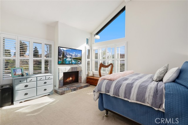Upstairs are two spacious bedrooms with vaulted ceilings and walk-in closets, including a secondary fireplace in the Primary Bedroom. The upstairs bathroom has been newly remodeled with a new tub and shower with glass doors, glass tile matching the kitchen backsplash, a new vanity with quartz countertop, and new cabinets and drawers. Additional highlights include central A/C and an upstairs laundry closet.