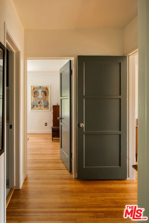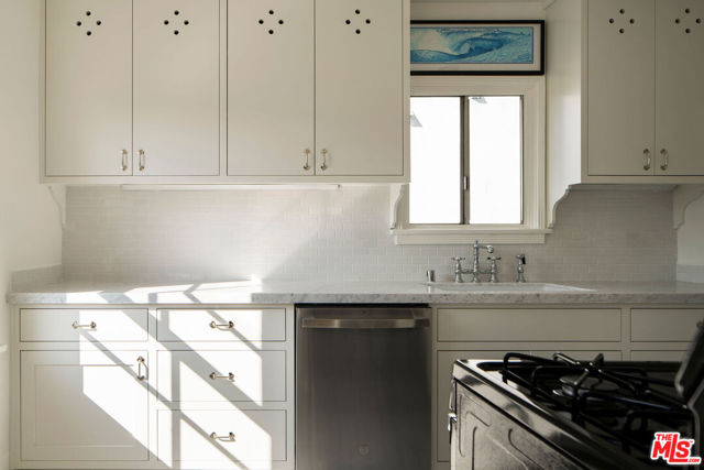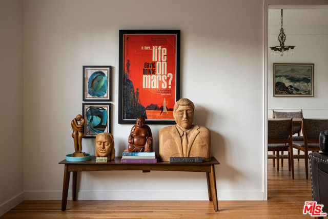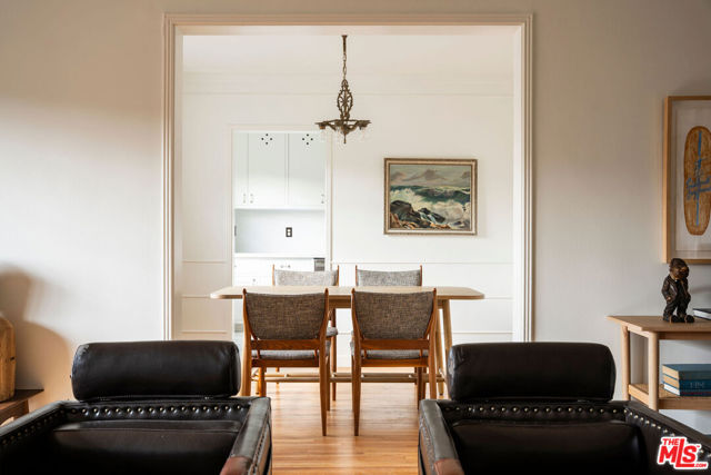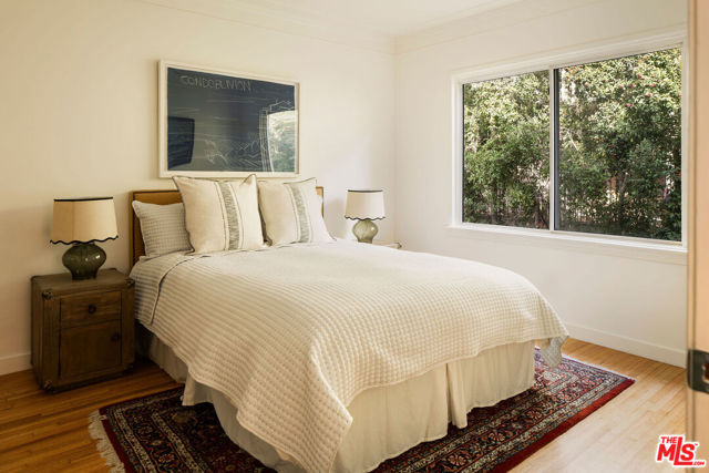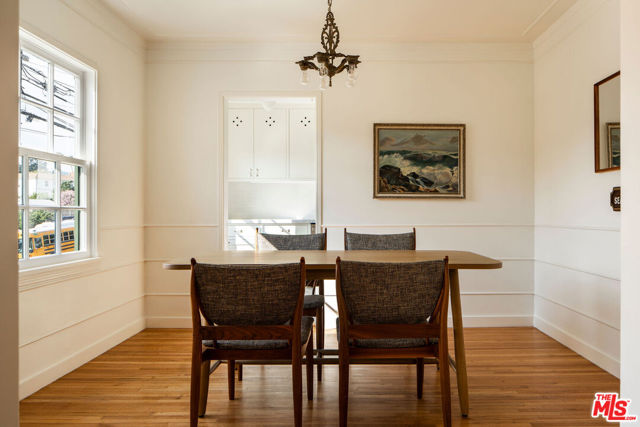 Located in the heart of Los Feliz, one of Los Angeles' most sought-after neighborhoods, this enchanting upper level 2 bed, 2 bath residence is part of The Griffith, a 1940 property designed by architect H. J. Hamer, AIA. Thoughtfully reimagined by Better Shelter, the home blends classic architectural charm with a soft, refined modern sensibility. A quaint, private front yard framed by whimsical landscaping and a white picket fence creates a storybook-style arrival, setting the tone from the moment you enter. Inside, the residence is bathed in natural light, with oversized signature curved bay windows anchoring the living room. A true dining room with original hardwood floors and period-inspired lighting offers a warm, inviting space for both everyday living and intimate gatherings. The beautifully renovated kitchen features custom cabinetry, marble countertops, and timeless tilework, creating a space that feels both elegant and effortless. Original architectural details are layered with custom stained glass, curated vintage lighting, and tailored design touches that honor the building's 1940s roots while bringing a sense of quiet luxury to each room. The property has been comprehensively updated, including a new roof, sewer line, full electrical and plumbing systems, central HVAC, fencing and landscaping. A private garage adds convenience and additional value. The result is a rare Los Feliz offering that feels both magical and grounded: a beautifully restored upper-level home where architectural character, thoughtful design, and an exceptional location come together in perfect harmony.