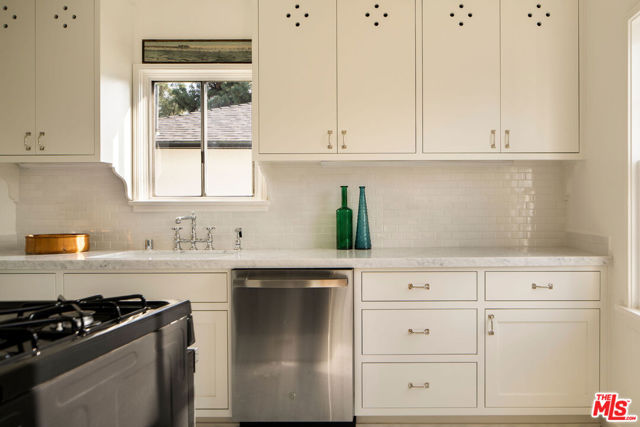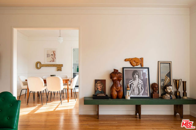 Located in the heart of Los Feliz, this enchanting 2 bed, 1 bath residence is part of The Griffith, a 1940 property designed by architect H. J. Hamer, AIA. Thoughtfully reimagined by Better Shelter, the home blends classic architectural charm with a refined modern sensibility. An arched entryway leads into light-filled interiors featuring signature curved bay windows, a true dining room with original hardwood floors, and a beautifully renovated kitchen with custom cabinetry, marble countertops, and timeless tilework. Two private outdoor areas extend the living space, while a bonus cellar offers valuable additional storage. Original architectural details are layered with curated vintage lighting, custom stained glass, and tailored design touches throughout. The property has been comprehensively updated with major system upgrades, including a new roof, sewer line, full electrical and plumbing systems, central HVAC, fencing, and landscaping. A private garage adds convenience and additional value. A rare Los Feliz offering that combines architectural character, thoughtful design, and an exceptional location in one move-in-ready home.