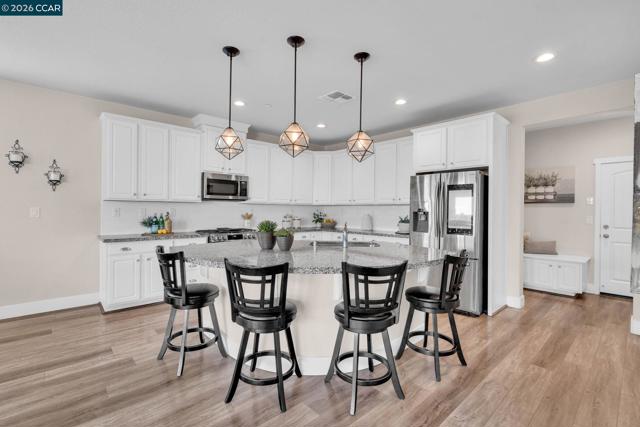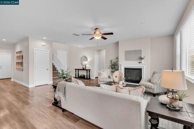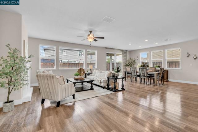 Welcome to 1881 Hartford Ct in the highly desirable River Islands community of Lathrop! Nestled on a quiet, family-friendly court, this light and bright home, built in 2019, offers a well-designed and spacious floor plan with 4 bedrooms and 3 full baths, including a downstairs bedroom and bath ideal for guests or multi-generational living. The open-concept living, dining, and kitchen areas flow seamlessly, perfect for everyday living and entertaining. A convenient mud room area and a large pantry provide excellent organization and functionality. Upstairs, enjoy a spacious loft ideal for a second living area, home office, or playroom. The expansive primary suite is a true retreat featuring dual walk-in closets and a generous bathroom with separate his-and-hers sink areas. The large backyard is designed for relaxation and entertaining with a covered patio for outdoor dining and a dedicated dog run. Just a 2-minute walk to the baseball field and dog park, this home offers exceptional access to outdoor recreation. Additional highlights include no HOA fees and approximately four years remaining on the builder warranty, making this a fantastic opportunity to own a newer home in one of Lathrop’s premier master-planned communities.