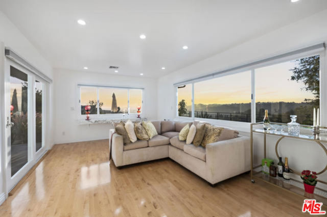 CAN'T HELP FALLING IN LOVE~ Come And Make this Elvis Presley 1960's 70's Retreat Your Forever Home!!! Stunning One-Story Mid-Century Retreat with Spectacular Views! Located on a quiet, private cul-de-sac just 10 minutes from Rodeo Drive. This fully gated mid-century home offers exceptional privacy, tranquility, and effortless indoor/outdoor living. Thoughtfully remodeled inside and out, the residence showcases refined design elements, impeccable craftsmanship, and panoramic canyon views from nearly every room. A formal entry leads to an expansive coffered living room with a fireplace and seamless access to the outdoor terrace. The modern chef's kitchen equipped with professional-grade appliances features a bright breakfast area and opens to the formal dining room with an impressive 11-foot pitched ceiling and custom marble decorative shelving. Walls of glass throughout the home flood the interiors with natural light and open directly to the terrace, creating an ideal setting for entertaining. Property offers TWO luxurious PRIMARY SUITES situated on opposite ends of the home for ultimate privacy. One includes a generous sitting room, while the other features dual walk-in closets. Both suites offer spa-like bathrooms, ample storage, and serene canyon views. A third guest or family suite with its own bath and a separate office complete the versatile interior layout. Additional features include:* Newly designed architectural entry gates and front door* Beautiful hardwood floors and recessed lighting* 8-camera security system and indoor/outdoor sound system* Two-car garage plus under-house storage. This home was thoughtfully designed and constructed on Caissons, providing a deep engineered foundation designed for long-term stability and peace of mind. Outside, an expansive terrace overlooks the canyons and features a heated swimming pool and hot tub perfect for relaxing or hosting gatherings in a serene, private setting. This exceptional property combines mid-century charm, modern luxury, and breathtaking views in one of the most desirable Beverly Hills- Post location.